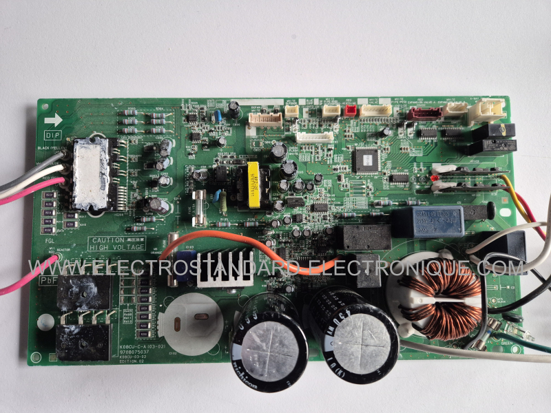 Nous proposons la réparation de circuits imprimés, cartes électroniques, platine P.C.B de contrôle, de commande, carte et platine Inverter, de puissance, de régulation, carte mère, platine électronique de pilotage, filtre, mother board, plaque, plaquette électronique, powerd board, MAIN PCB ASSY ATLANTIC, FUJITSU, GENERALHIYASU Référence fabricant 898684 (indication platine K08CU-1201) de groupe, unité extérieure (UE) AOYG14LAC2.